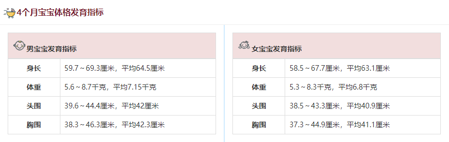 4个月宝宝体络发育指标